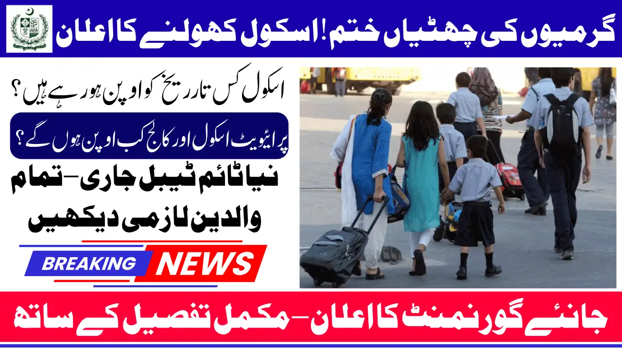 School Reopening Date And Timetable: After weeks of speculation and the long summer holidays, the Education Departments of all four provinces have now officially announced the school reopening date and new timetable for public and private institutions across Pakistan. With students, teachers, and parents eagerly awaiting clarity, the unified statement comes as a relief and allows families to begin preparing for a smooth transition back to academic life.